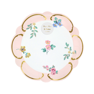Inspired by the ornate elegance of rococo design, these pastel pink side plates are a charming addition to any celebration. Featuring delicate posies, softly waved edges, and gold foil illustrated details, they echo the beauty of vintage ceramics with a fresh, modern feel. The reverse side is color-matched for a perfectly polished look.