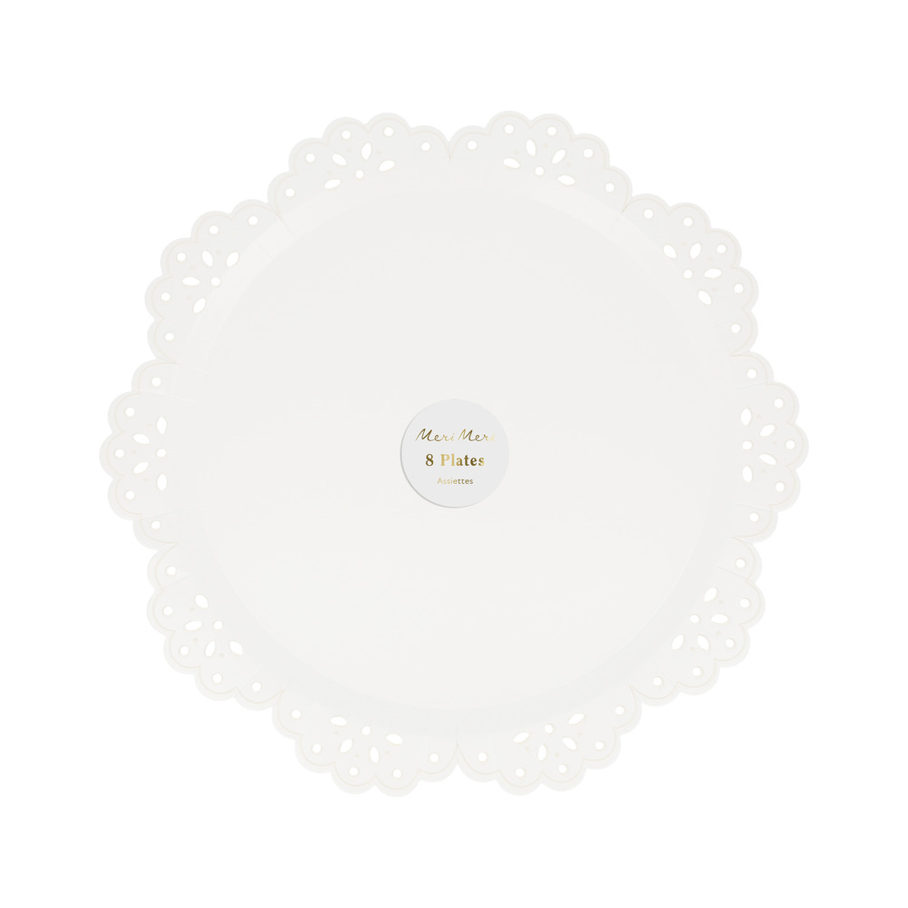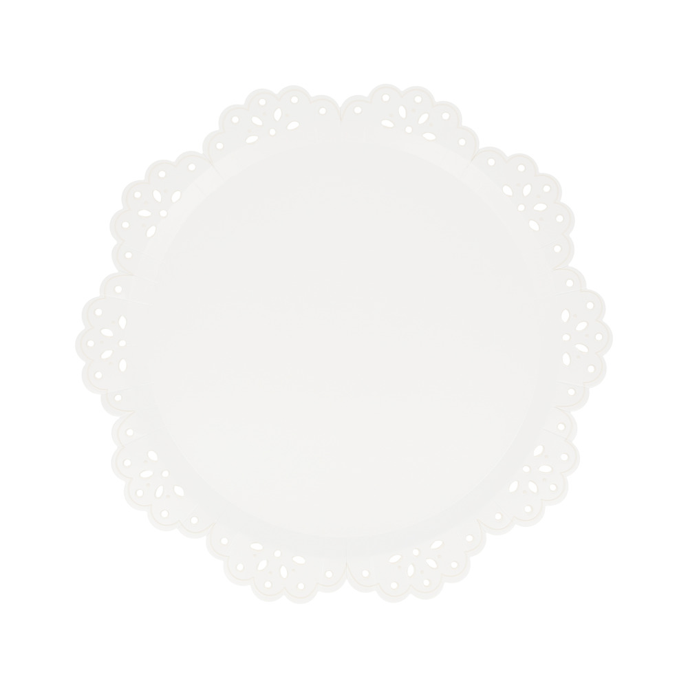 This pretty party range is inspired by broderie anglaise, a delicate lace eyelet embroidery design that is oh so stylish and having a fashion forward moment. These small white plates are ideal for table layering and for delicious treats. They're perfect for bridal showers, baby showers or any celebration where you want a beautiful look.