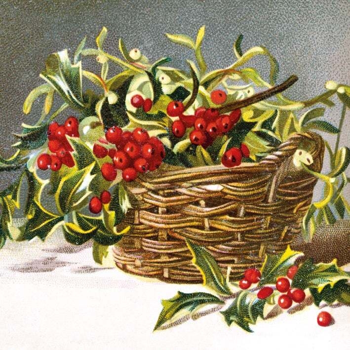 BOX SML SQ Holly And Mistletoe Basket