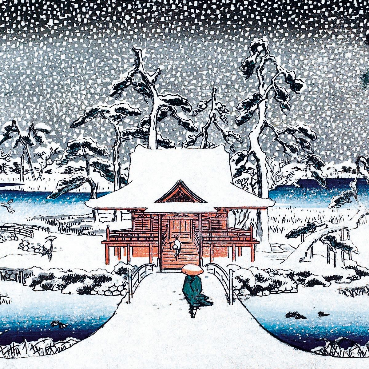 BOX LRG SQ Snow Scene At The Pond At Inokashira